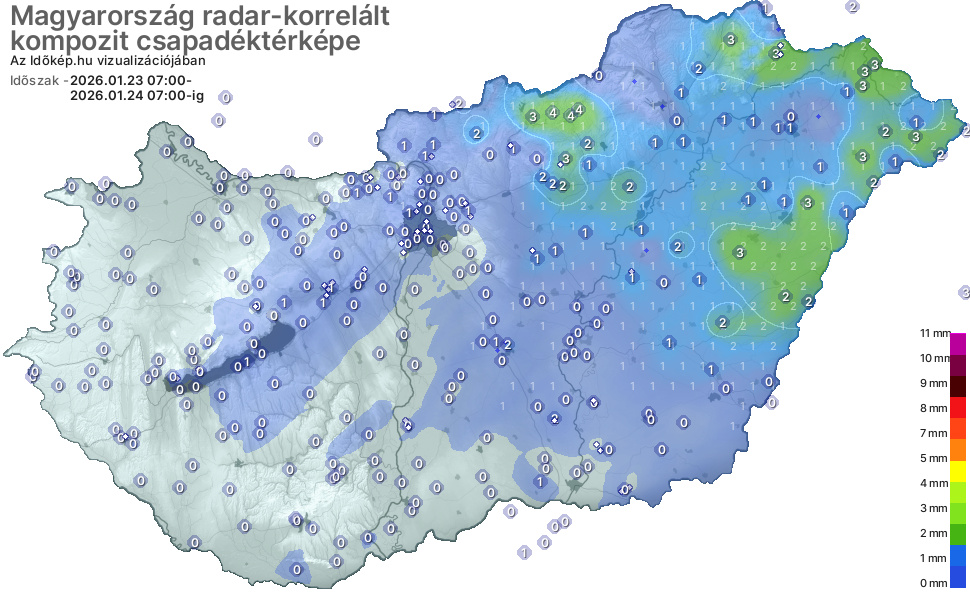 Éjfél óta hullott csapadék