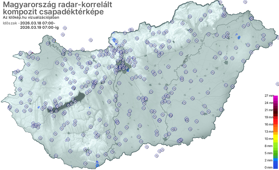A csapadéktérkép megmutatja, hogy az elmúlt 24 órában mely vármegyékben mennyi csapadék esett. Ebből egyből látszik, hogy szárazak-e a földek, szükséges-e még aznap locsolni a kertben, a mezőgazdasági területeken.