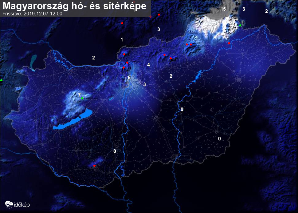 Hótérképünkön hazánk síterepei mellett észlelőink által jelzett hóvastagság adatok is