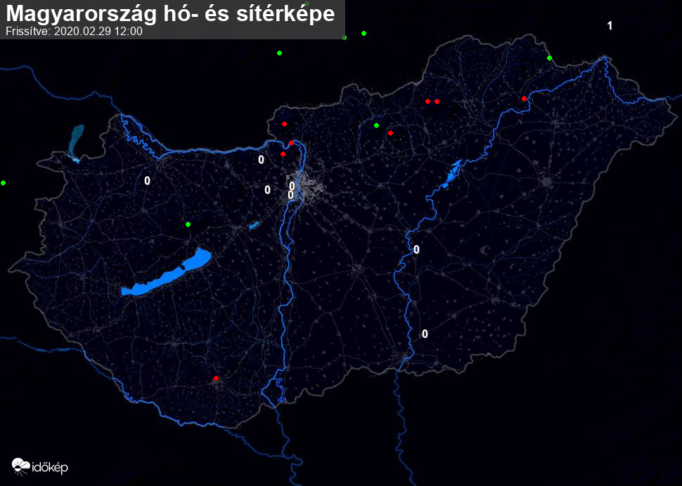 Hótérképünkön hazánk síterepei mellett észlelőink által jelzett hóvastagság adatok is