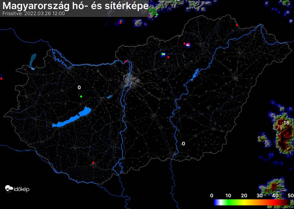 Hótérképünkön hazánk síterepei mellett észlelőink által jelzett hóvastagság adatok is megjelennek. A téli hidegben így láthatjuk, hova érdemes síelni, szánkózni indulni, merre kell óvatosan közlekedni, hol csúszósak az utak. A térkép az elmúlt 12 órában, az Észlelési oldalon leadott észlelések, valamint a sielok.hu adatai alapján készül.
