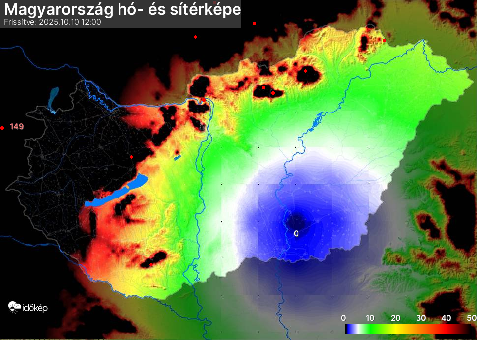 Hótérképünkön hazánk síterepei mellett észlelőink által jelzett hóvastagság adatok is