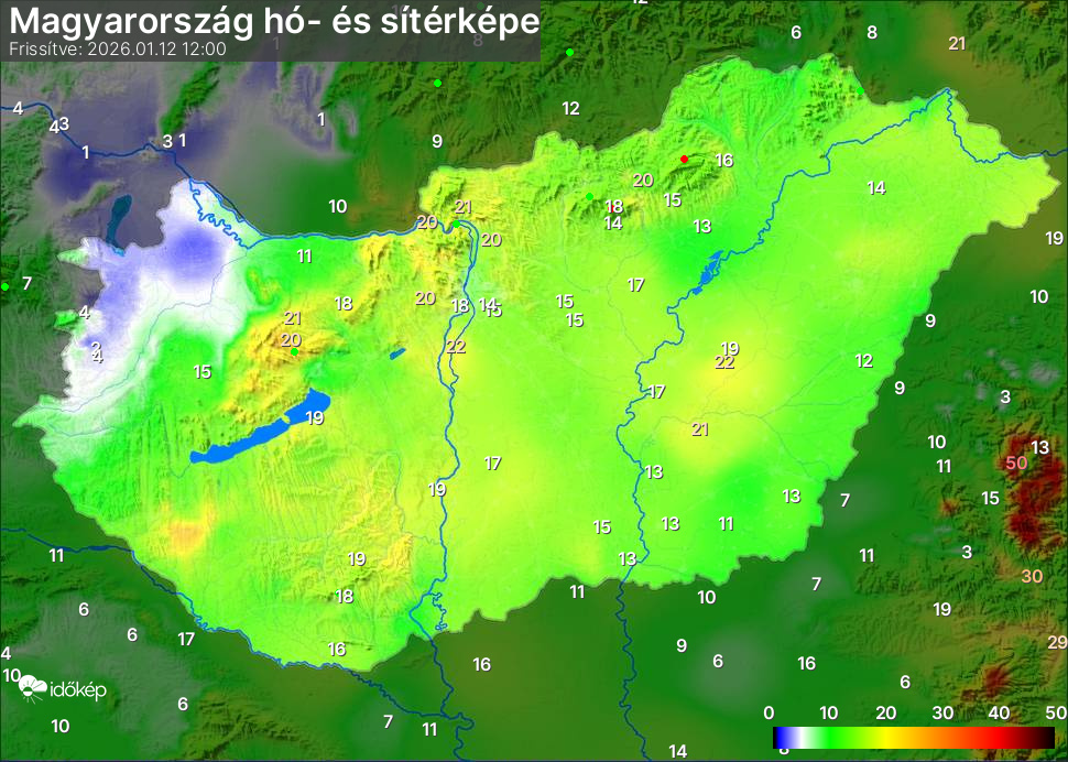 Hótérképünkön hazánk síterepei mellett észlelőink által jelzett hóvastagság adatok is megjelennek. A téli hidegben így láthatjuk, hova érdemes síelni, szánkózni indulni, merre kell óvatosan közlekedni, hol csúszósak az utak. A térkép az elmúlt 12 órában, az Észlelési oldalon leadott észlelések, valamint a sielok.hu adatai alapján készül.