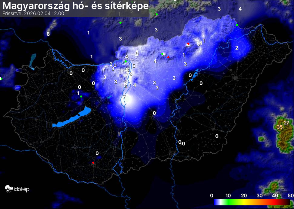 Hótérképünkön hazánk síterepei mellett észlelőink által jelzett hóvastagság adatok is megjelennek. A téli hidegben így láthatjuk, hova érdemes síelni, szánkózni indulni, merre kell óvatosan közlekedni, hol csúszósak az utak. A térkép az elmúlt 12 órában, az Észlelési oldalon leadott észlelések, valamint a sielok.hu adatai alapján készül.