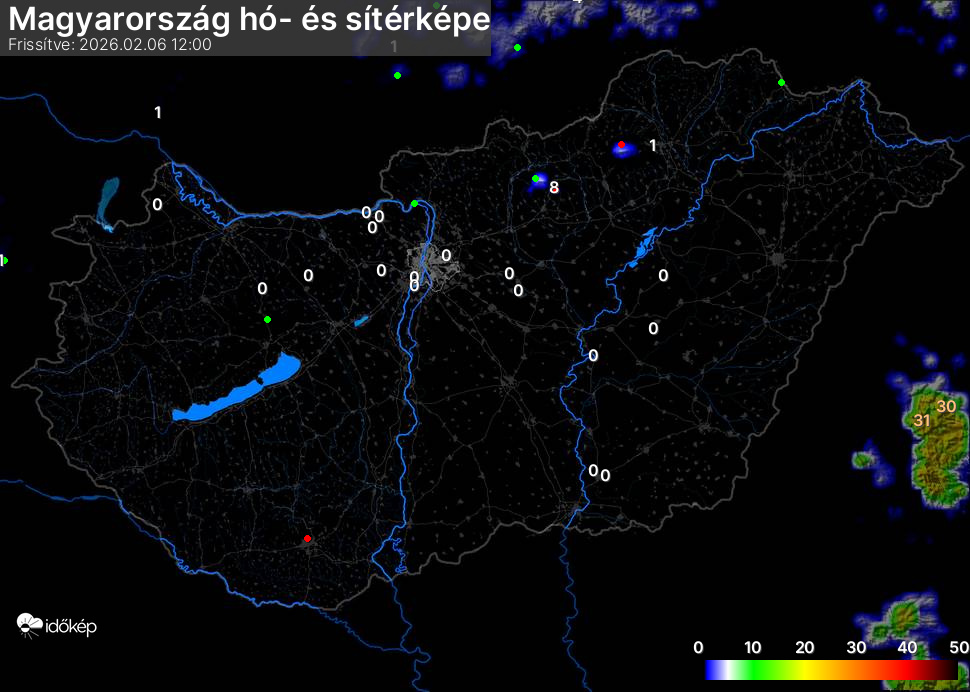 Hótérképünkön hazánk síterepei mellett észlelőink által jelzett hóvastagság adatok is megjelennek. A téli hidegben így láthatjuk, hova érdemes síelni, szánkózni indulni, merre kell óvatosan közlekedni, hol csúszósak az utak. A térkép az elmúlt 12 órában, az Észlelési oldalon leadott észlelések, valamint a sielok.hu adatai alapján készül.