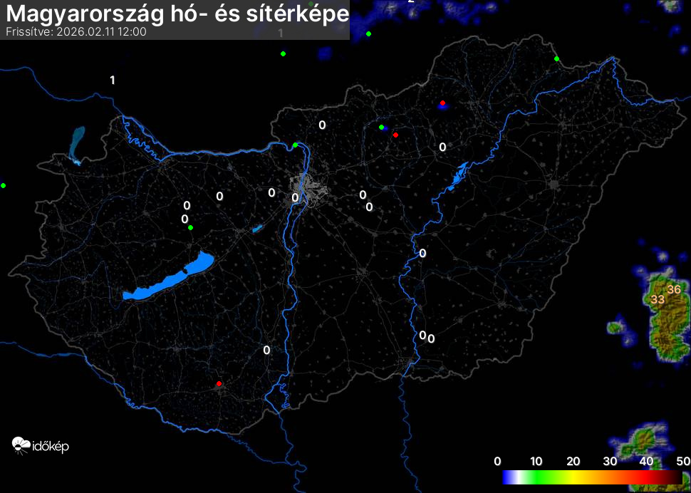 Hótérképünkön hazánk síterepei mellett észlelőink által jelzett hóvastagság adatok is megjelennek. A téli hidegben így láthatjuk, hova érdemes síelni, szánkózni indulni, merre kell óvatosan közlekedni, hol csúszósak az utak. A térkép az elmúlt 12 órában, az Észlelési oldalon leadott észlelések, valamint a sielok.hu adatai alapján készül.