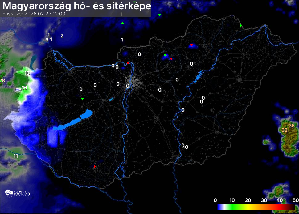 Hótérképünkön hazánk síterepei mellett észlelőink által jelzett hóvastagság adatok is megjelennek. A téli hidegben így láthatjuk, hova érdemes síelni, szánkózni indulni, merre kell óvatosan közlekedni, hol csúszósak az utak. A térkép az elmúlt 12 órában, az észlelési oldalon leadott észlelések, valamint a sielok.hu adatai alapján készül.