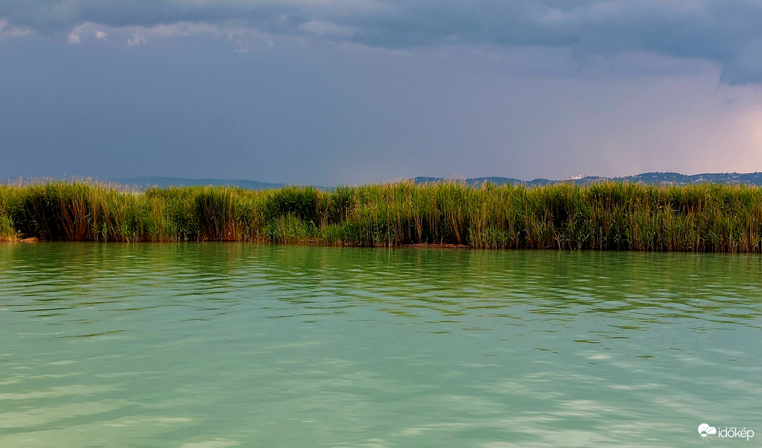 Csopak, a hajókikötőből fotózva, a közeledő vihar