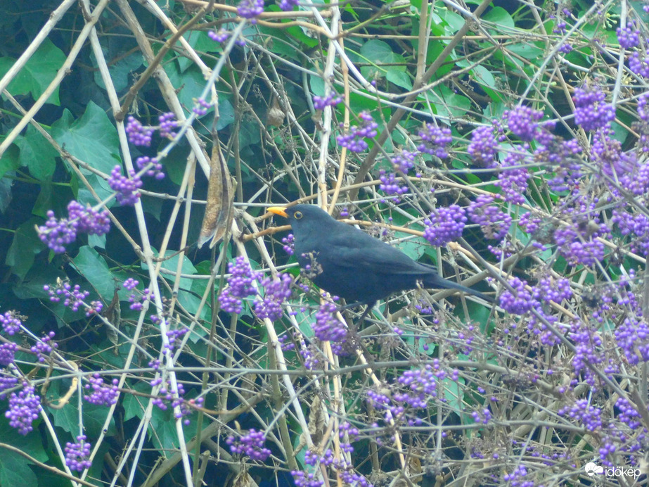 Szépek ezek a lila bogyók, meg persze a madárka is! Nagyon szép fotó!
