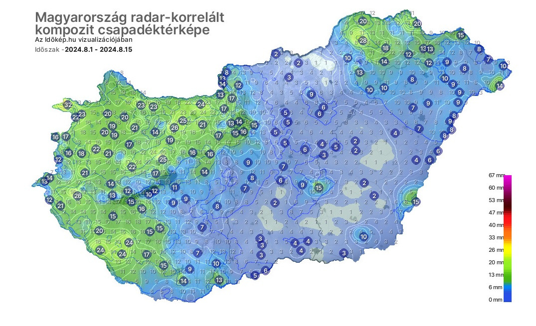Észak-Bakony még 20mm-t sem kapott, de ami problémás ,hogy az Alföldön van ahol csak néhány tized mm csapadék hullott.