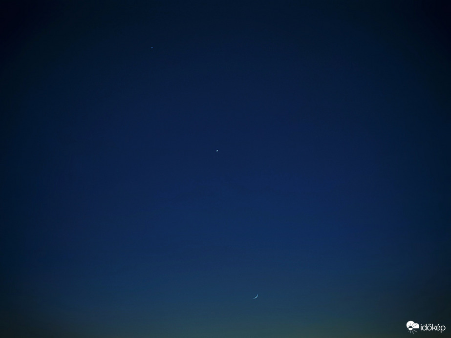 Hold, Jupiter, Vénusz együttállása. Előző kép kinagyított részlete.