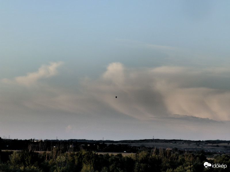 Hőlégballon a gomolyfelhő előtt.