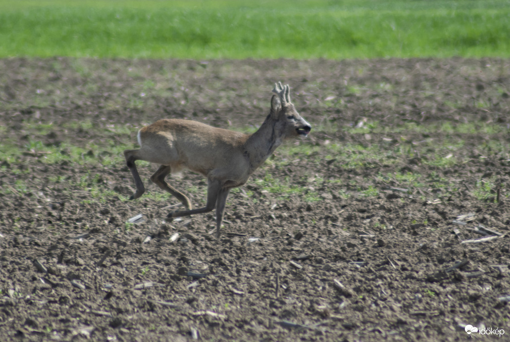 Egy bak őz is vígan ugrándozik a nyárias idő beköszöntekor.