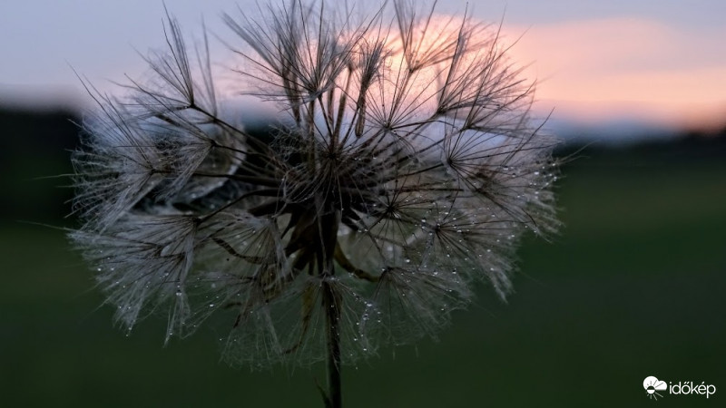 Szemerkélő esőben naplemente idején.