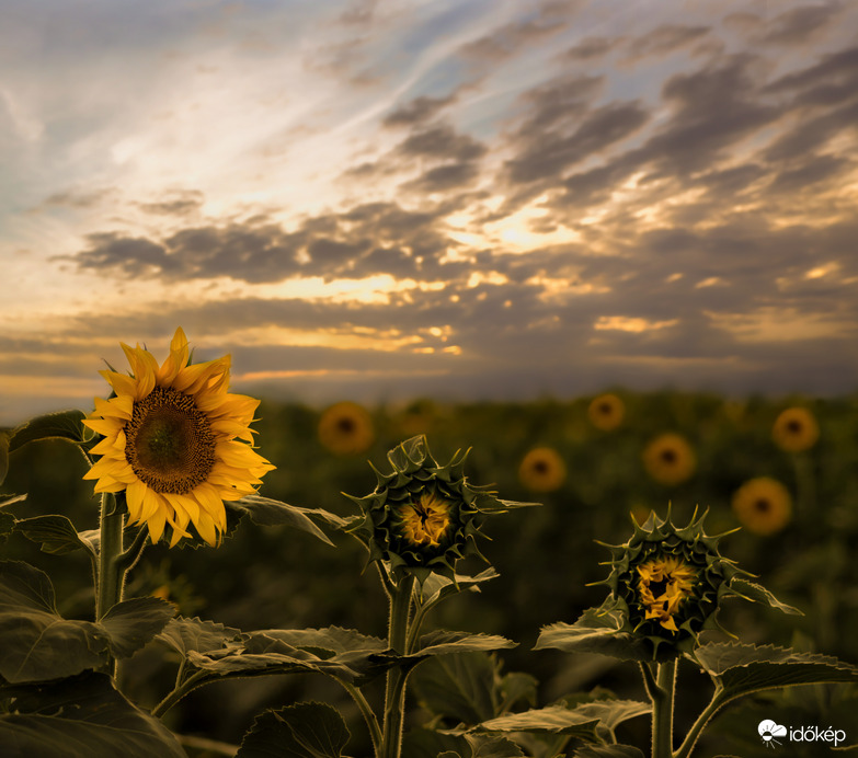 Napraforgó mező a naplementében