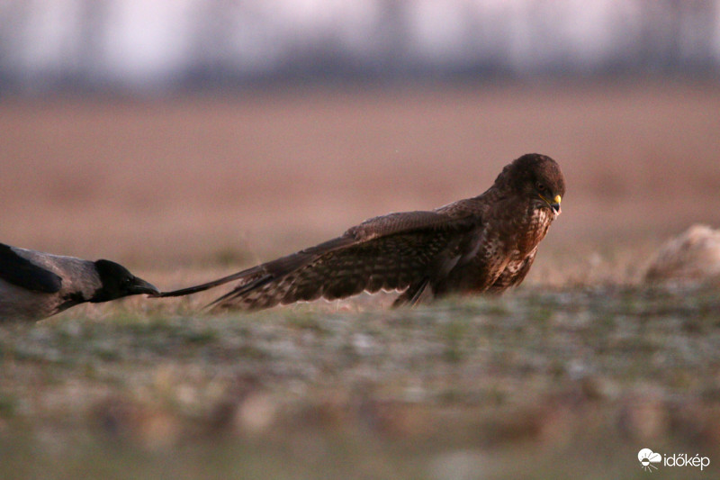 én is enni akarok! Dolmányos varjú húzza az egerészölyv tollát...