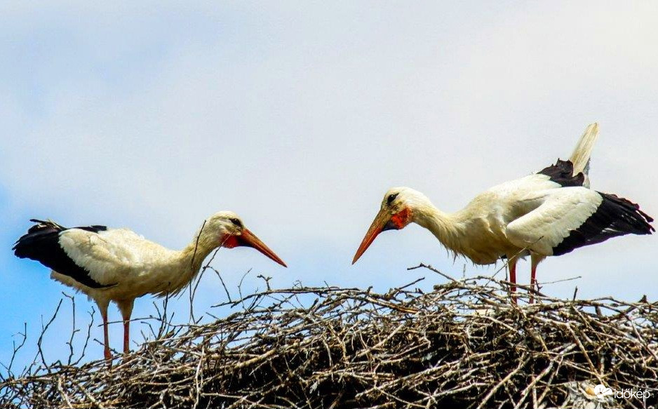 Fehér gólyák beszélgetnek