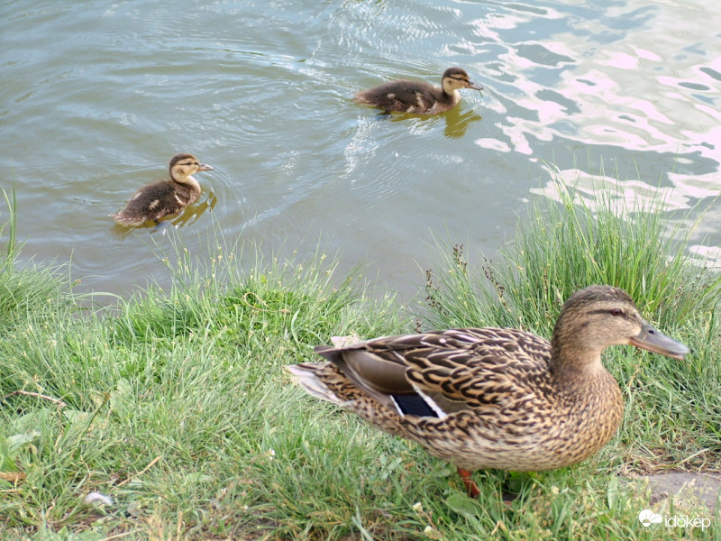 Anya vigyázó tekintete mellett fotóztam a kacsa családot.