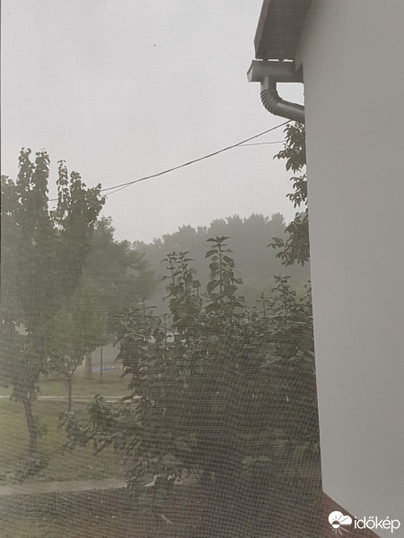 Szakadó eső. Dörgés. Erős szél.