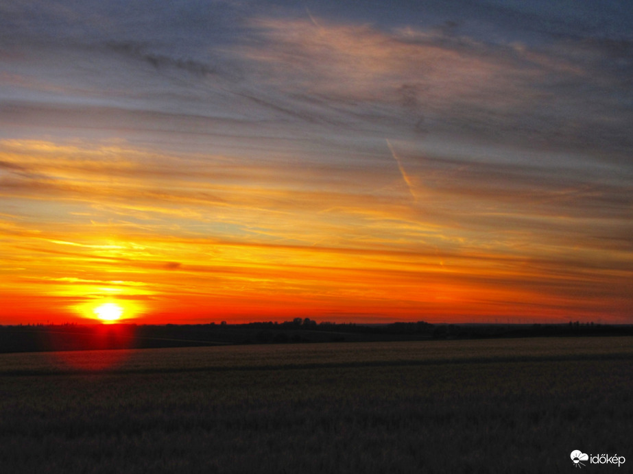 Fátyolokkal tűzdelt színes naplemente.