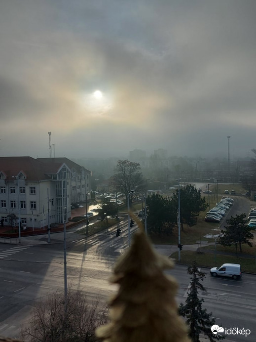 sejtelmes szinek fenyek voltak ma pár percig mig előbukott(erölködött) a nap a ködben ,szmogban felhőkben