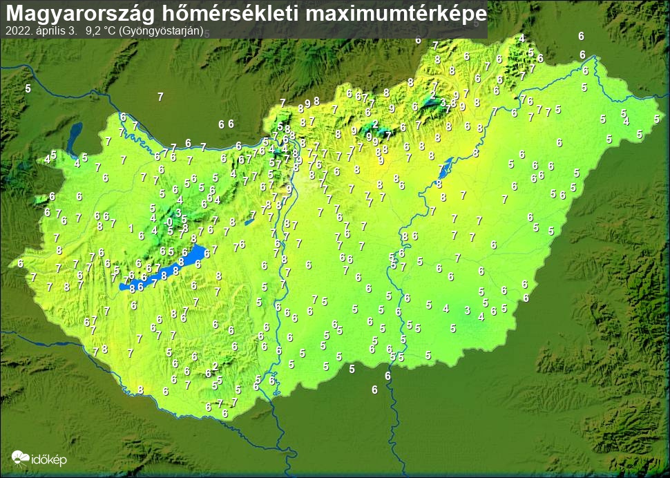 A maximumtérképen kirajzolódik az adott napon mért legmagasabb hőmérsékletek térbeli eloszlása. Az adott nap hőmérsékleti maximumát télen reggel és este 7 óra, nyáron reggel és este 8 óra között mért legmagasabb értékkel adjuk meg. Adatbeküldés: következő nap reggel 4 óráig.