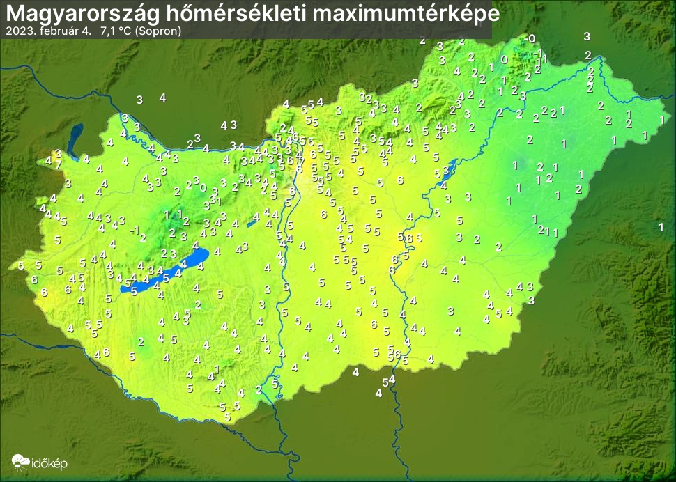 A maximumtérképen kirajzolódik az adott napon mért legmagasabb hőmérsékletek térbeli eloszlása. Az adott nap hőmérsékleti maximumát télen reggel és este 7 óra, nyáron reggel és este 8 óra között mért legmagasabb értékkel adjuk meg. Adatbeküldés: következő nap reggel 4 óráig.