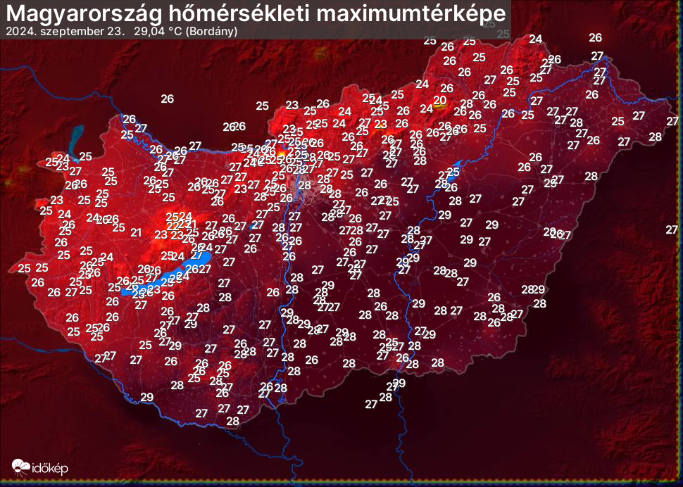 A maximumtérképen kirajzolódik az adott napon mért legmagasabb hőmérsékletek térbeli eloszlása. Az adott nap hőmérsékleti maximumát télen reggel és este 7 óra, nyáron reggel és este 8 óra között mért legmagasabb értékkel adjuk meg. Adatbeküldés: következő nap reggel 4 óráig.
