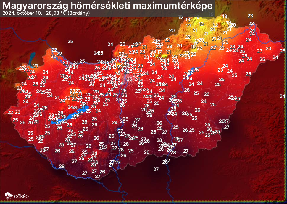 A maximumtérképen kirajzolódik az adott napon mért legmagasabb hőmérsékletek térbeli eloszlása. Az adott nap hőmérsékleti maximumát télen reggel és este 7 óra, nyáron reggel és este 8 óra között mért legmagasabb értékkel adjuk meg. Adatbeküldés: következő nap reggel 4 óráig.