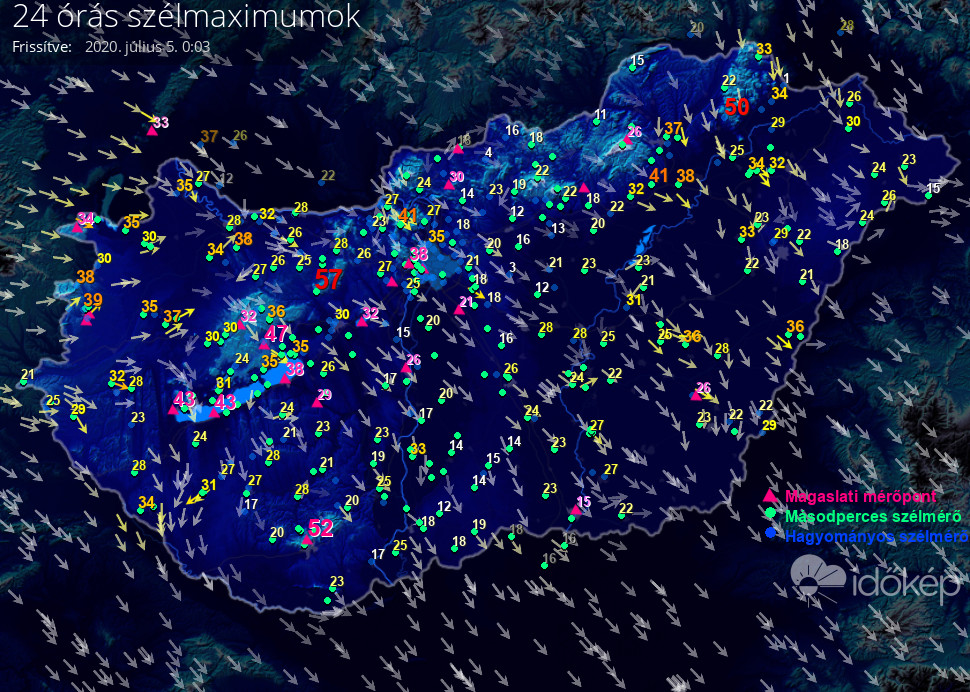 24 órás szélmaximum