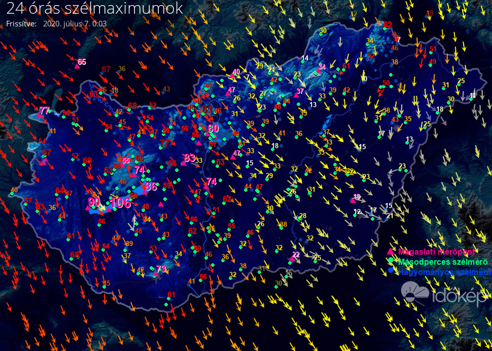 24 órás szélmaximum