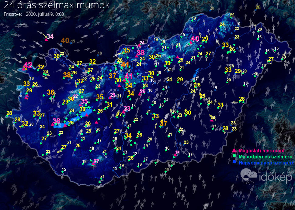 24 órás szélmaximum