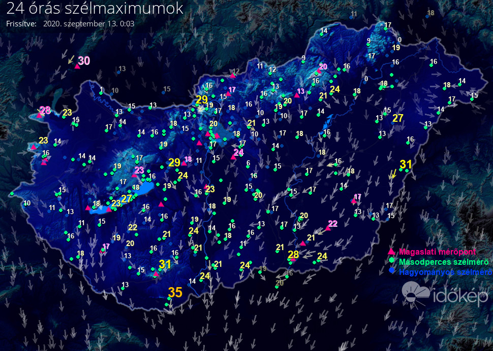 24 órás szélmaximum