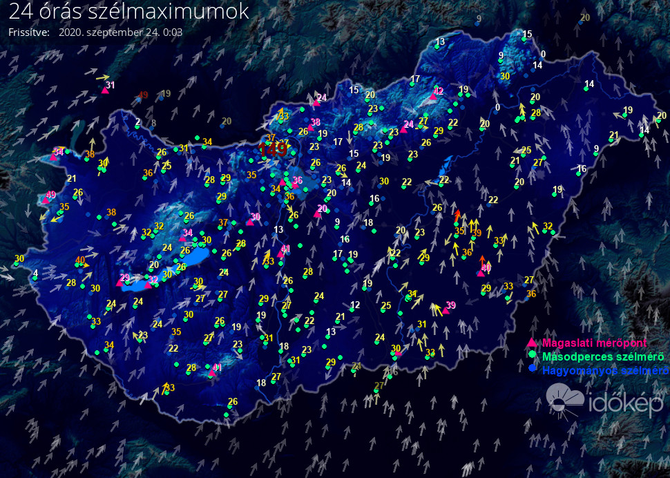 24 órás szélmaximum