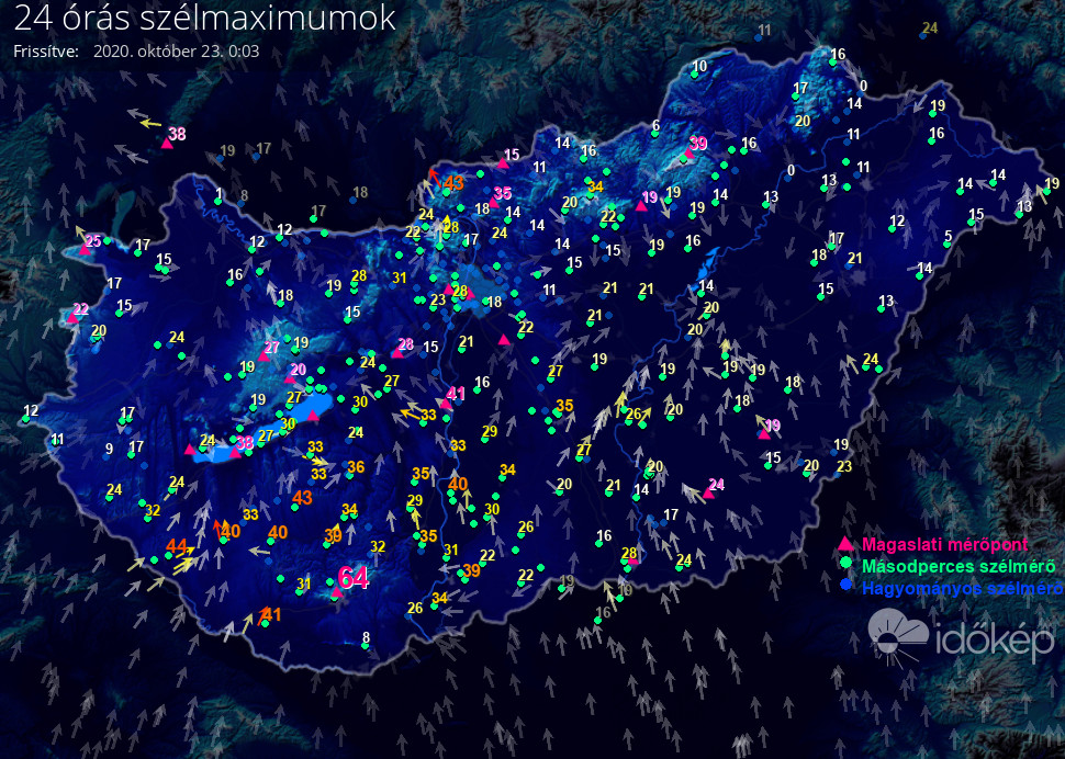 Térképünkön az elmúlt napon született legmagasabb szélerősség értéket jelenítjük meg.