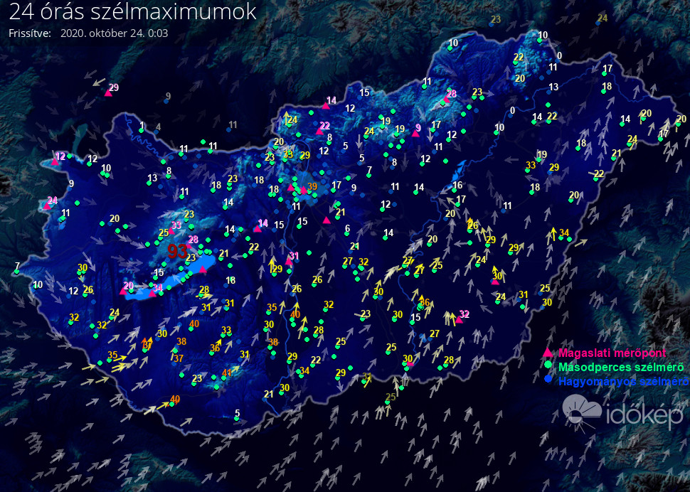 24 órás szélmaximum