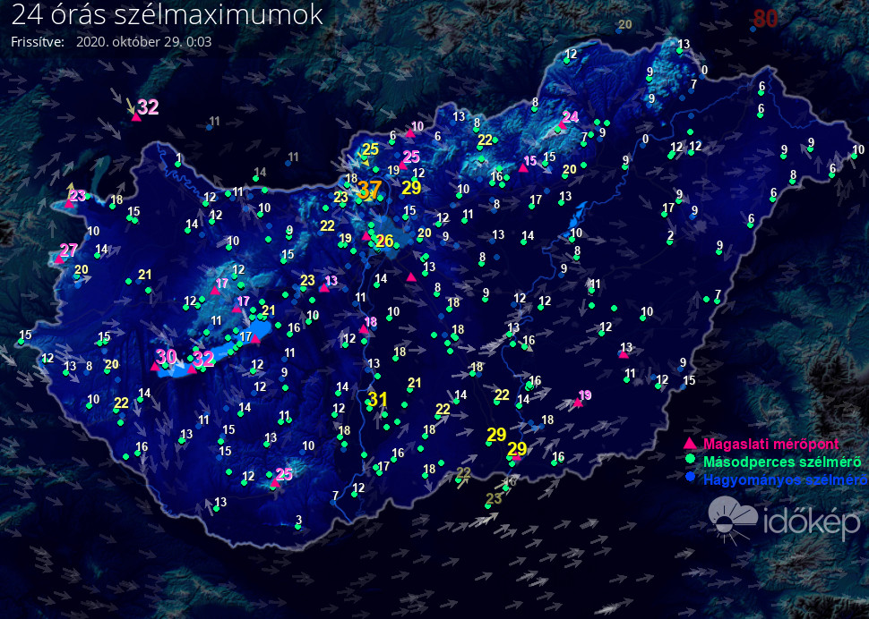24 órás szélmaximum