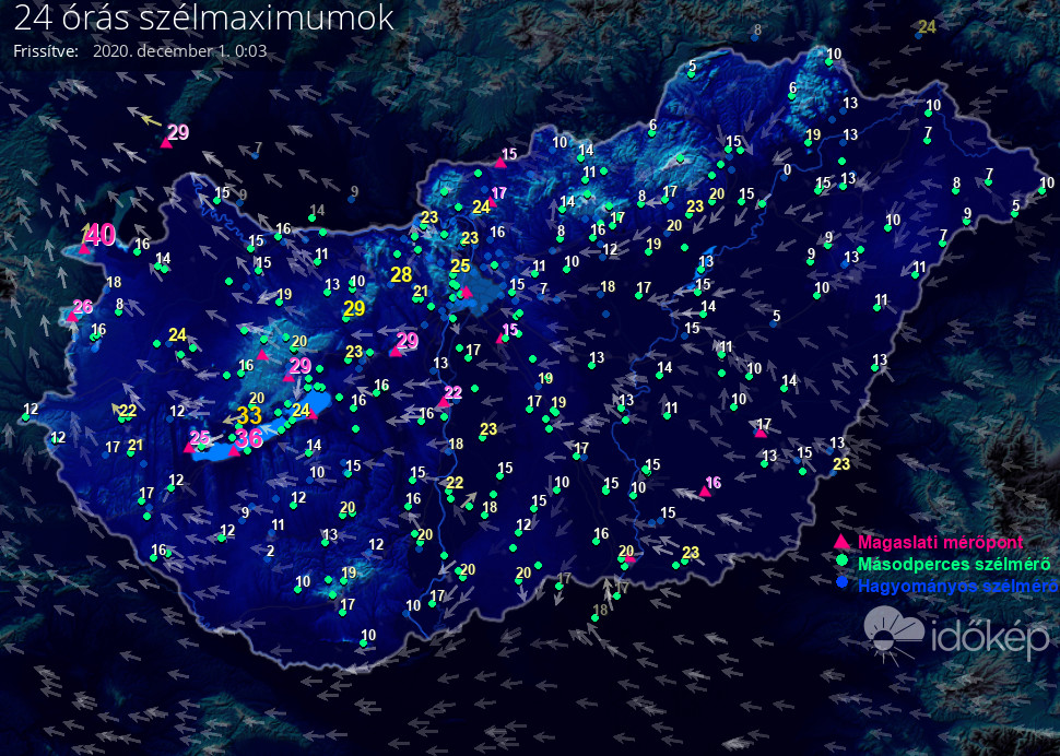 24 órás szélmaximum