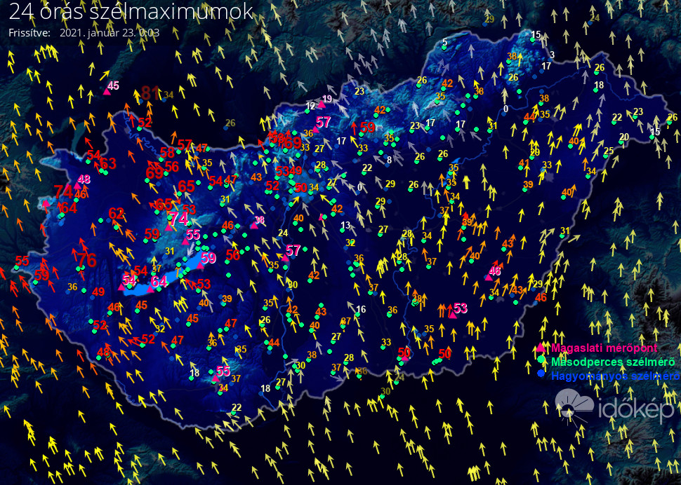 24 órás szélmaximum