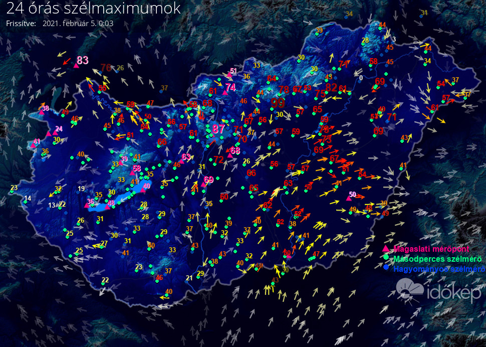 24 órás szélmaximum