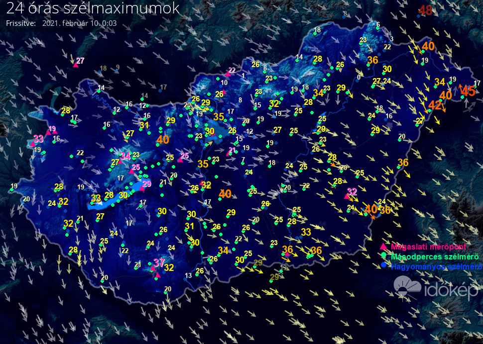 24 órás szélmaximum