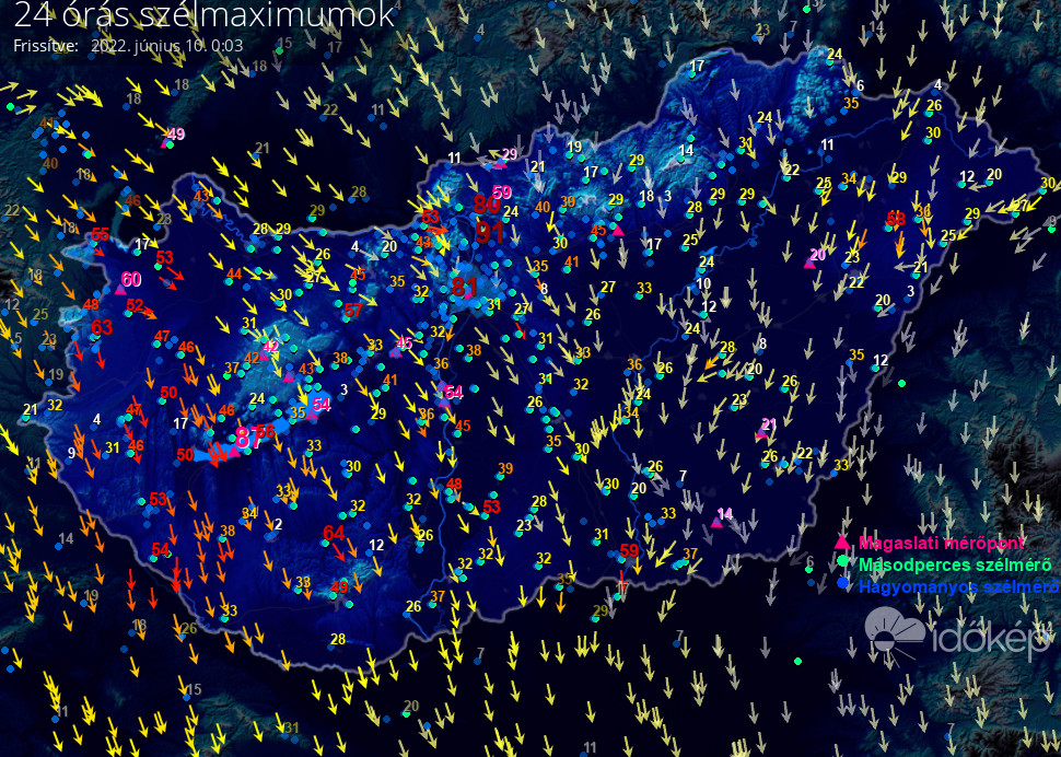24 órás szélmaximum