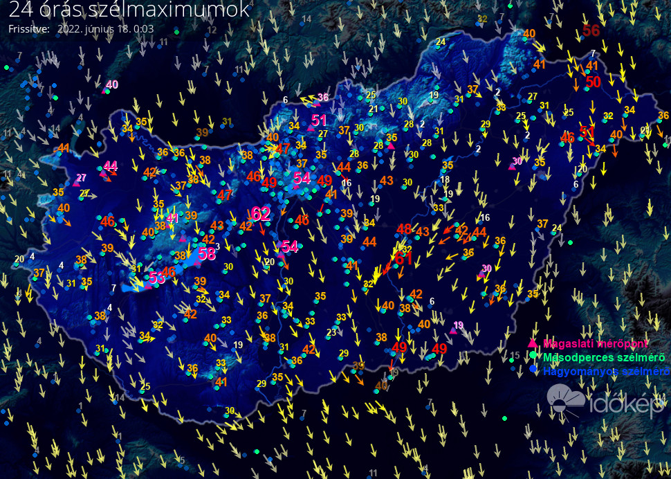 24 órás szélmaximum