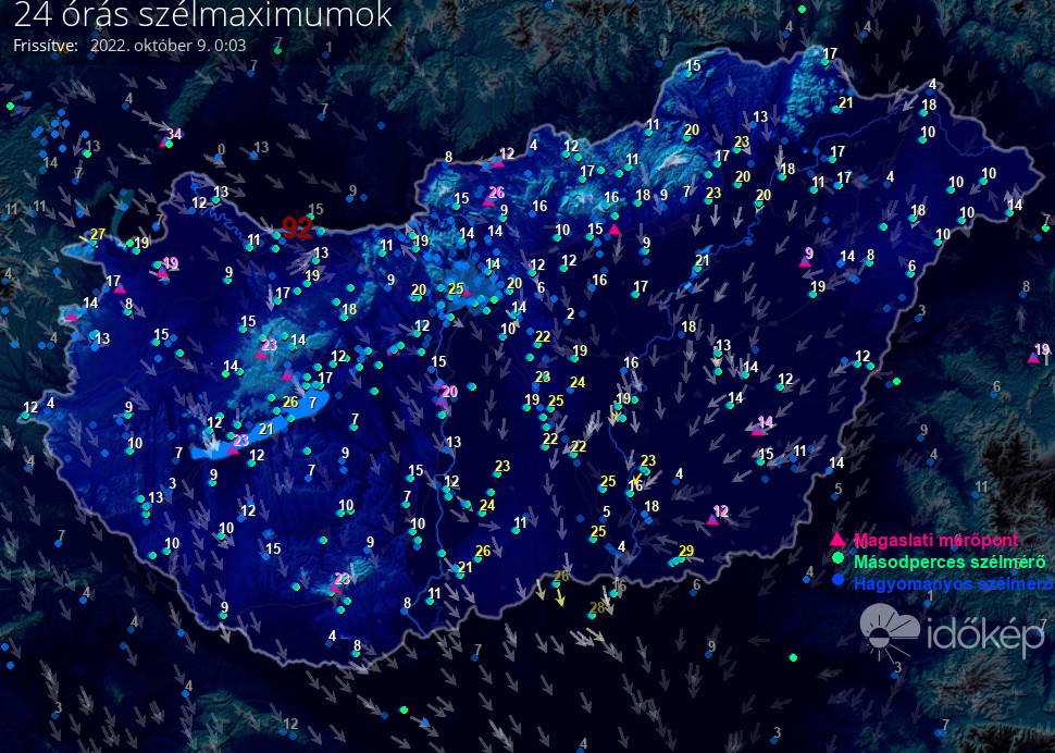 24 órás szélmaximum