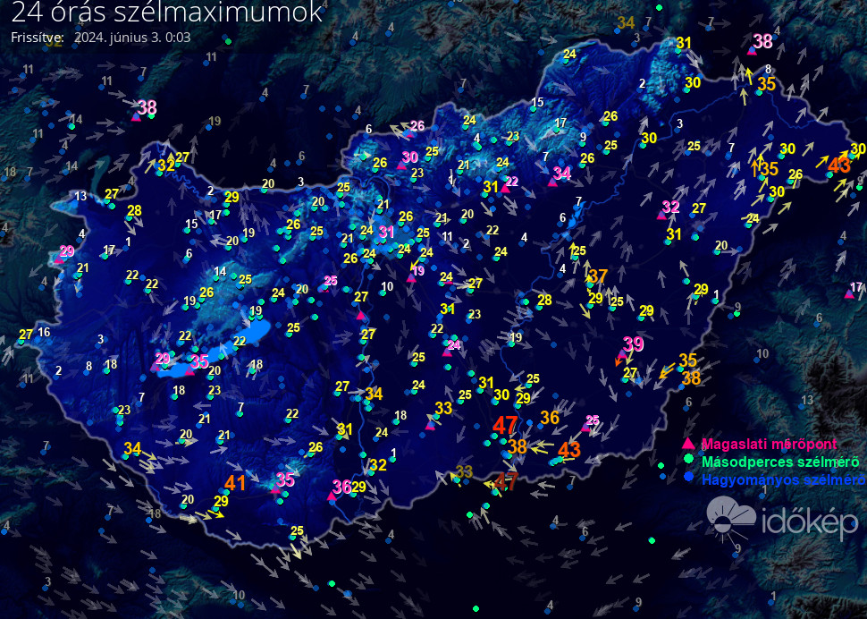 24 órás szélmaximum