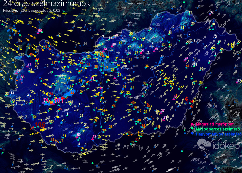 24 órás szélmaximum