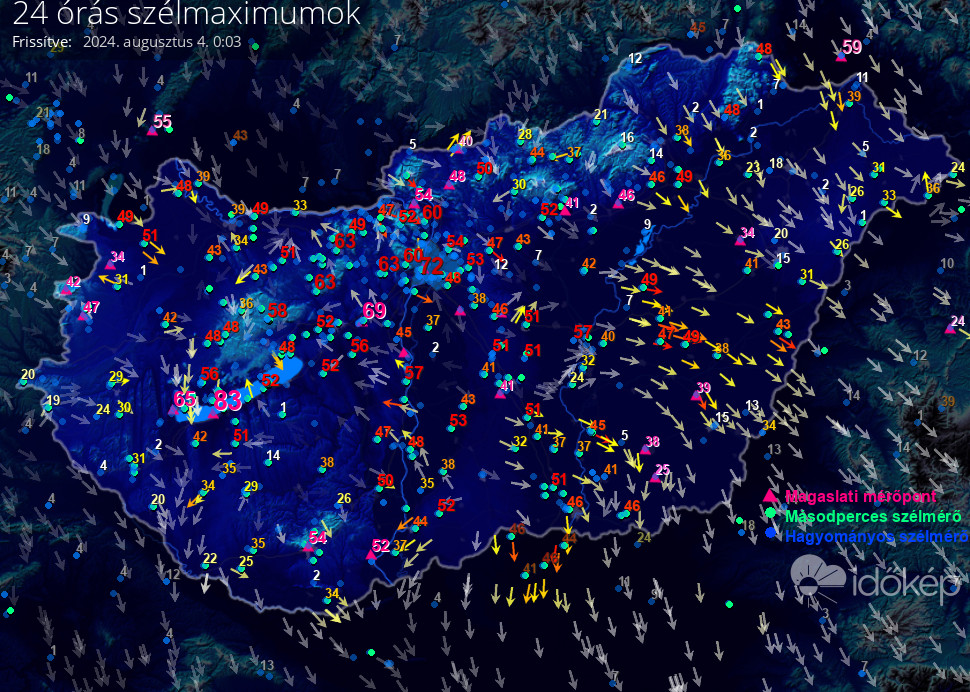 24 órás szélmaximum