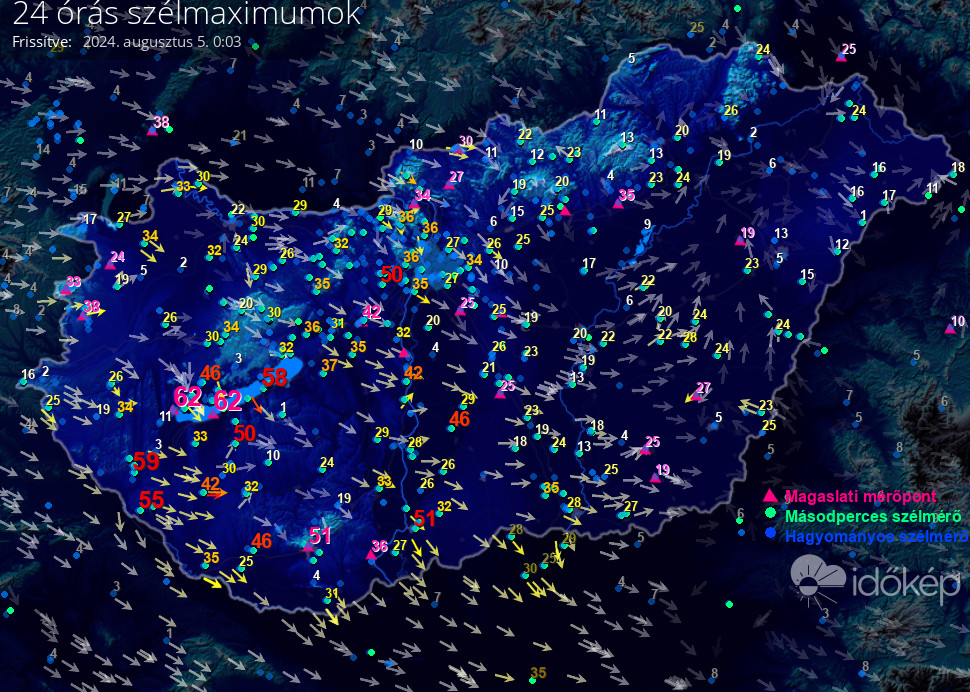 24 órás szélmaximum