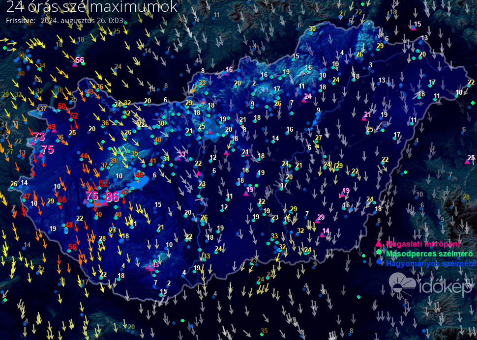 24 órás szélmaximum