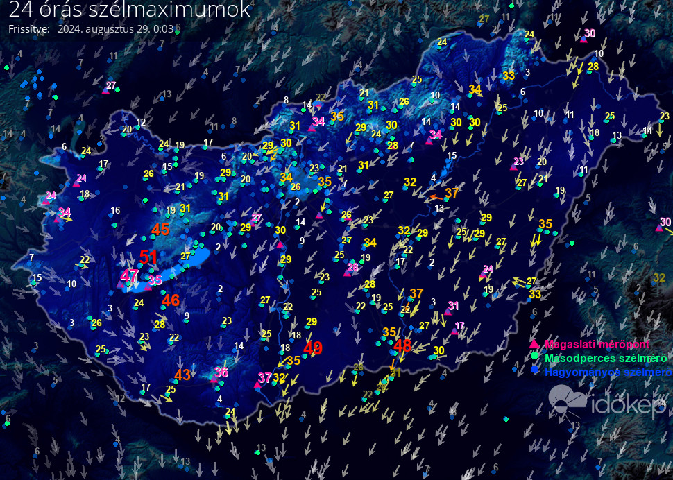 24 órás szélmaximum